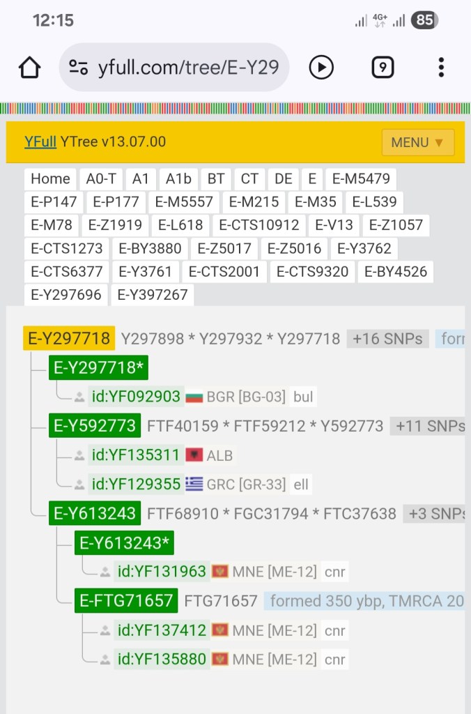 Posmatrajući Y-DNK stablo porodice Petrović-Njegoš na servisu YFull, pod granom E-Y297718, mi zapravo ne gledamo samo u šifre i mutacije, već u najprecizniji istorijski dnevnik ispisan u genima. Haplogrupa E-V13 kojoj oni pripadaju je paleobalkanska, što znači da njeni korijeni na prostoru Balkana pulsiraju milenijumima.
